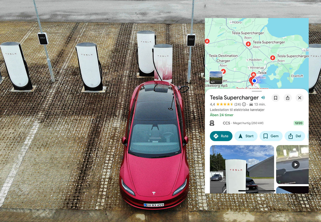 At man kan navigere frem til de forskellige ladeudbydere via Google Maps og samtidig se antallet af ledige lynladere og deres effekt, er ikke noget nyt. Men at Tesla også træder ind på Google Maps-scenen, er nyt. Det medvirker til historien om, at mærket har ambitioner om at blive den udbyder, som flest benytter.