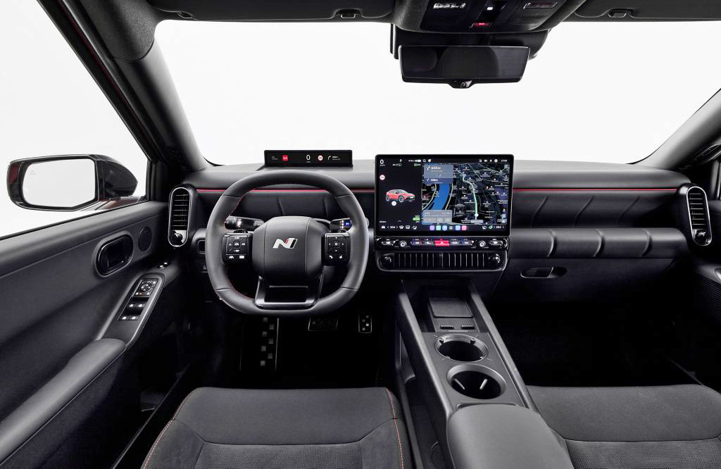 Indvendigt er Ioniq 3 indrettet efter Hyundais “Furnished Space”-filosofi, hvor funktionalitet og komfort smelter sammen i et indbydende kabinemiljø.