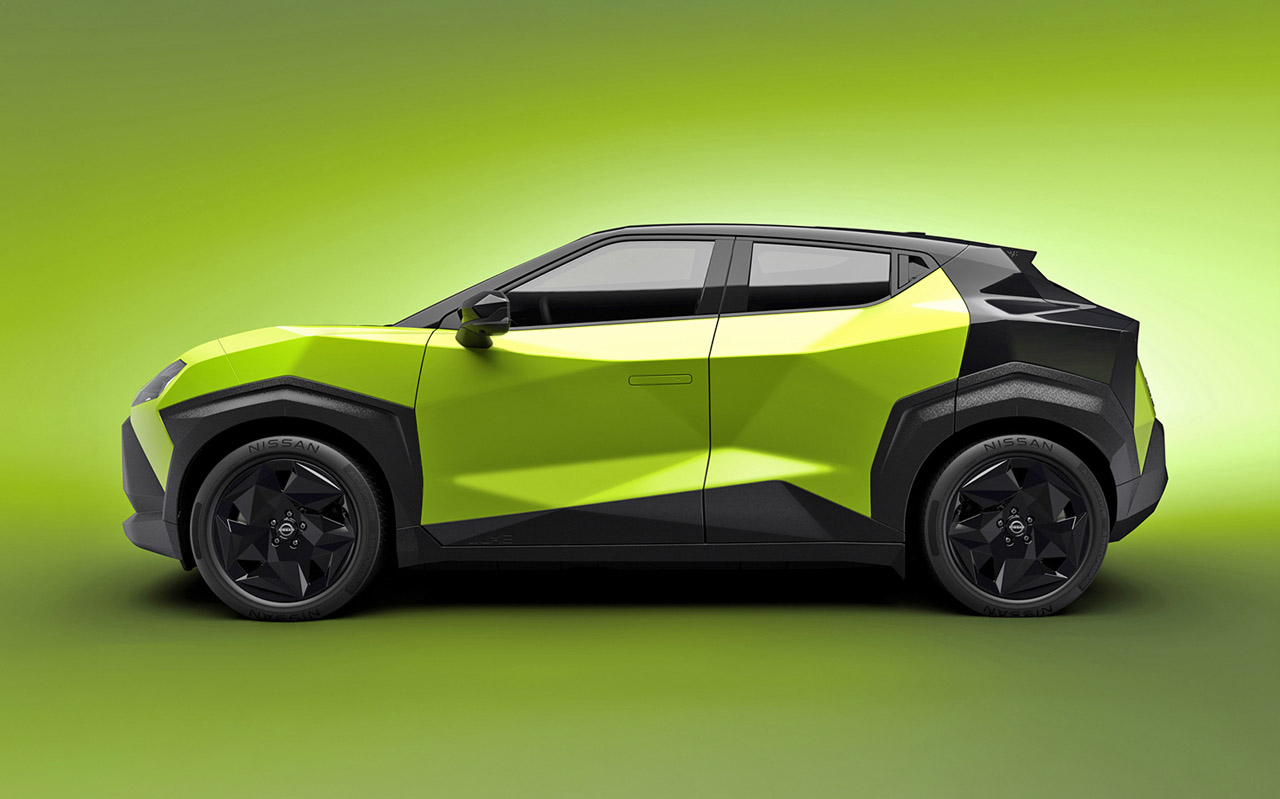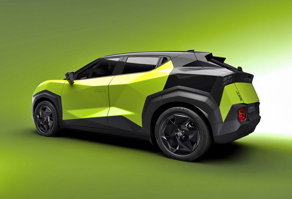 Nissan går all-in på vildt design i den første, rent elektriske udgave af Juke. Teknikken kommer fra den større Leaf - dansk premiere i 2027.
