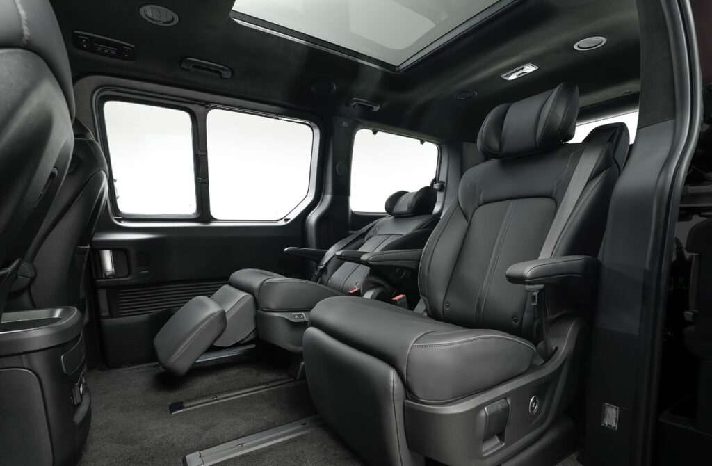 Luxury skal ses som Hyundai elektriske svar på de fineste udgaver af VW Caravelle og Mercedes V-Klasse. En luksuspræget van til VIP-folket, du som regel vil se i diskret sort lakering og ditto tonede ruder.
