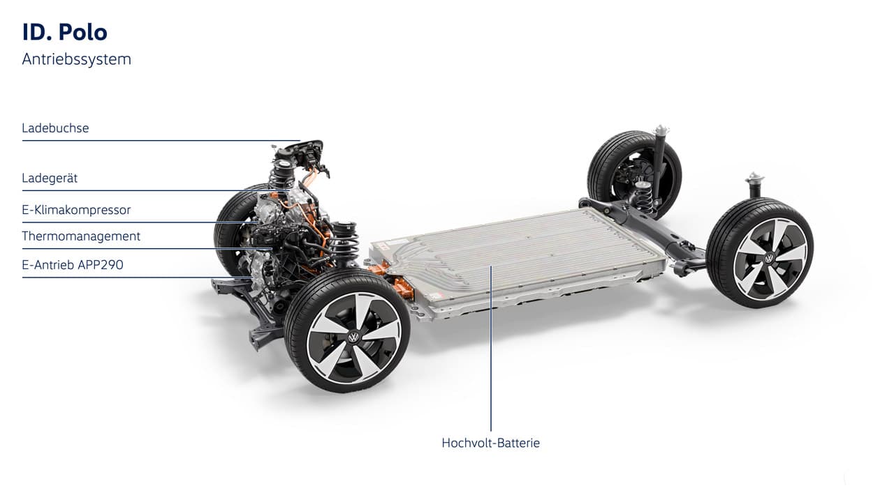 Den helt store forskel er skiftet fra bag- til forhjulstræk. Elmotor og den tilhørende elektronik er samlet i bilens front, hvilket sparer plads, vægt og omkostninger. Ifølge Hvilkenbils oplysninger gør det ID. Polo til VW’s letteste og mest effektive elbil, der angiveligt kommer under 1.550 kg.