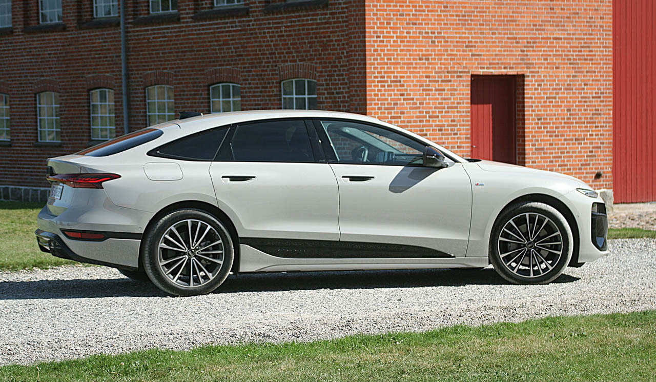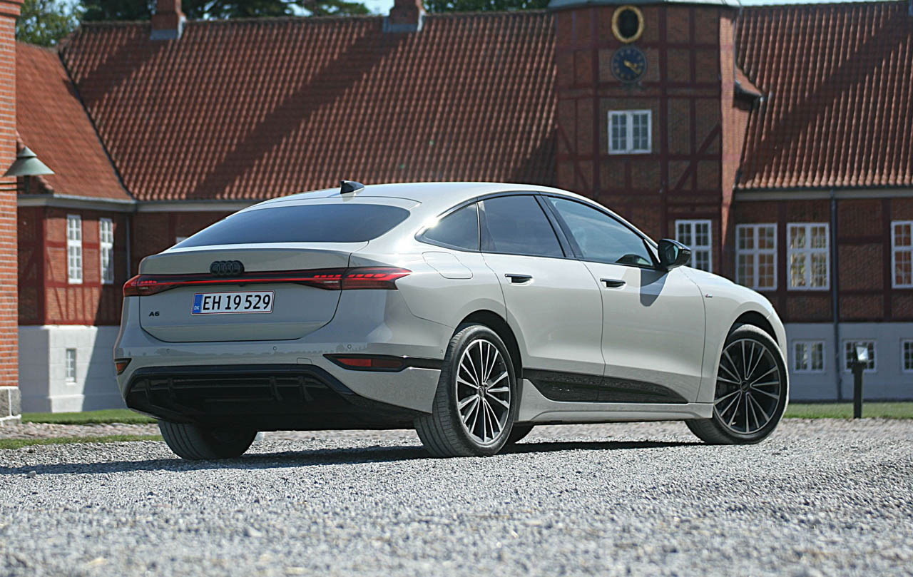 Dagens testbil – med det laaaange navn modelnavn A6 Sportback S-line plus e-tron performance (det står heldigvis ikke skrevet på bagklappen) – koster 590.000 kr. Dens rekordlave vindmodstand er udtænkt for størst mulig effektivitet, og testbilens batteri på 95 kWh er med til at presse rækkevidden op på 750 kilometer.