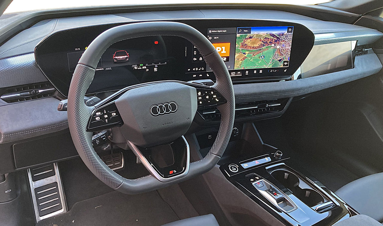 A6’eren er mere end bare elektrisk – den findes faktisk også som fossilbil – og det er nok dér, at det går lidt galt med at opfylde mine pladsforventninger. Ligesom det er tilfældet i konkurrenten BMW i5. For trods en længde på næsten fem meter er benpladsen på bagsædet langt fra prangende. Desuden gør batterierne i bugen bunden så høj, at hvis forsæderne er justeret i bund, kan det være svært at mase sine størrelse 45-sko ind under sæderne. Voksne med semi-lange ben sidder heller ikke voldsomt bekvemt i bagsædet. Fra hofte til knæ peger benene for meget opad - der mangler i udpræget grad støtte under lårene.