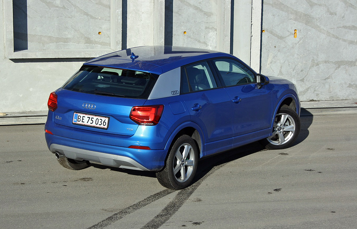 Audi synes selv, den nye Q2 er svær at sætte i bås. I markedsføringen kaldes den i hvert fald ’umulig at tagge’ med hashtagget #untaggable. Vi er dog ikke i tvivl; Audi Q2 er tyskernes bud på en bil i den populære crossoverklasse. Dog af typen med lav taglinje, som stjæler kabineplads bag førersæderne. Størrelsesmæssigt befinder Q2 sig med en totallængde på 419 cm i samme træskolængder som VW Golf og Audi A3 men med 3-4 cm kortere mellem akslerne. Testbilen er en Audi Q2 Sport 1,6 TDI 116 hk til knap 328.000 kr. inkl. levering - plus en del (dyrt) ekstraudstyr. Priserne for Audi Q2 starter ved 310.000 kr. med 1,0 liter 3-cylindret turbobenzinmotor – også med 116 hk.