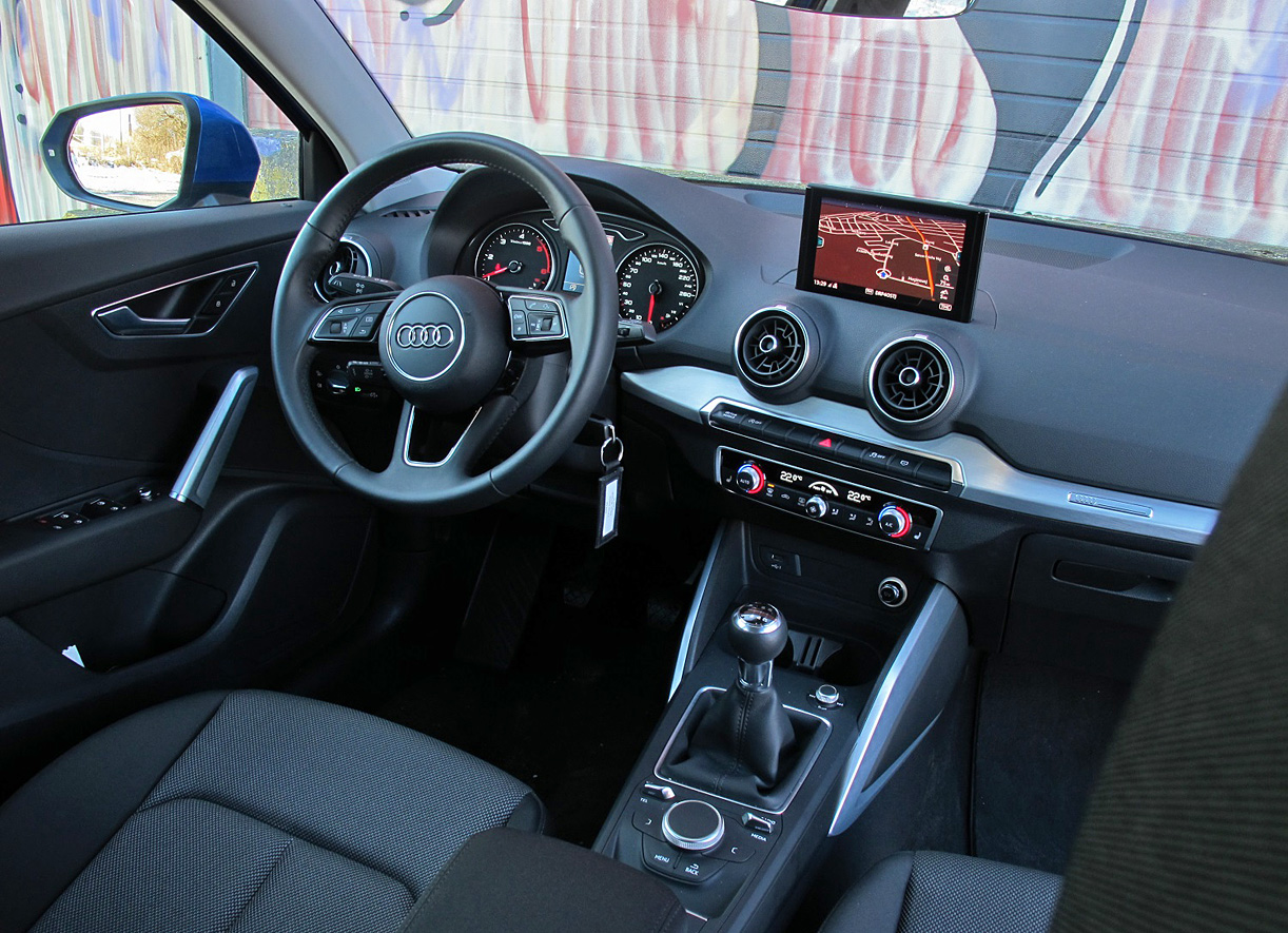 Desværre ret kedelig sammenlignet med Audi Q2’s friske ydre.