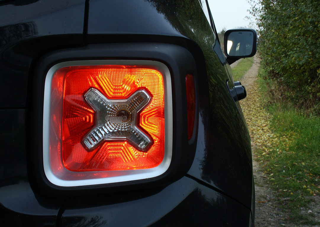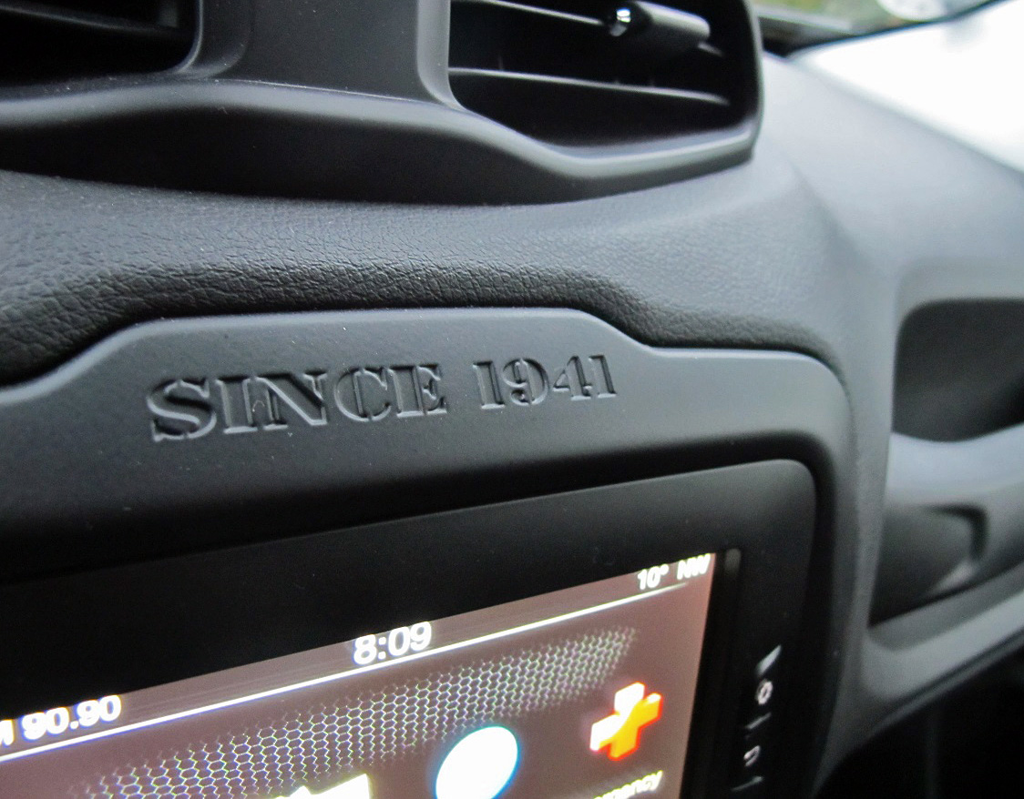 Mange steder i Renegade titter det lille ikoniske ansigt fra Willys Jeep - 7 lodrette kølerribber og to runde forlygter - frem i et stiliseret udtryk.