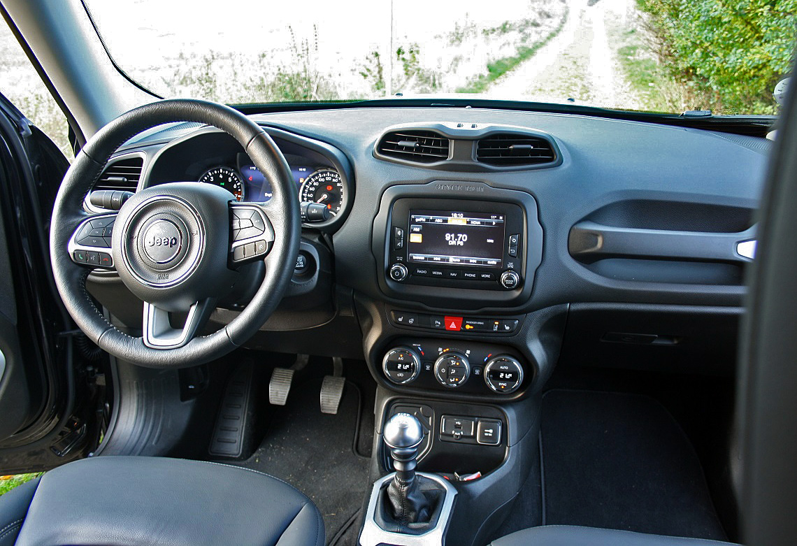 Grundstammen er gennemprøvet teknik og komponenter fra Fiat. Det fungerer, og i Renegade er materialer og finish bedre, end hvad amerikansk bilindustri ellers har budt os. De store forsæder, som vi synes at genkende fra Alfa Giulietta, er behagelige med god støtte under lårene. Stor som lille kan finde et passende forhold mellem rat, pedaler og sæde - og et fedt læderrat med varme samt et letgående gearskifte med lækker gearknop i aluminium øger ejerglæden i hverdagen.