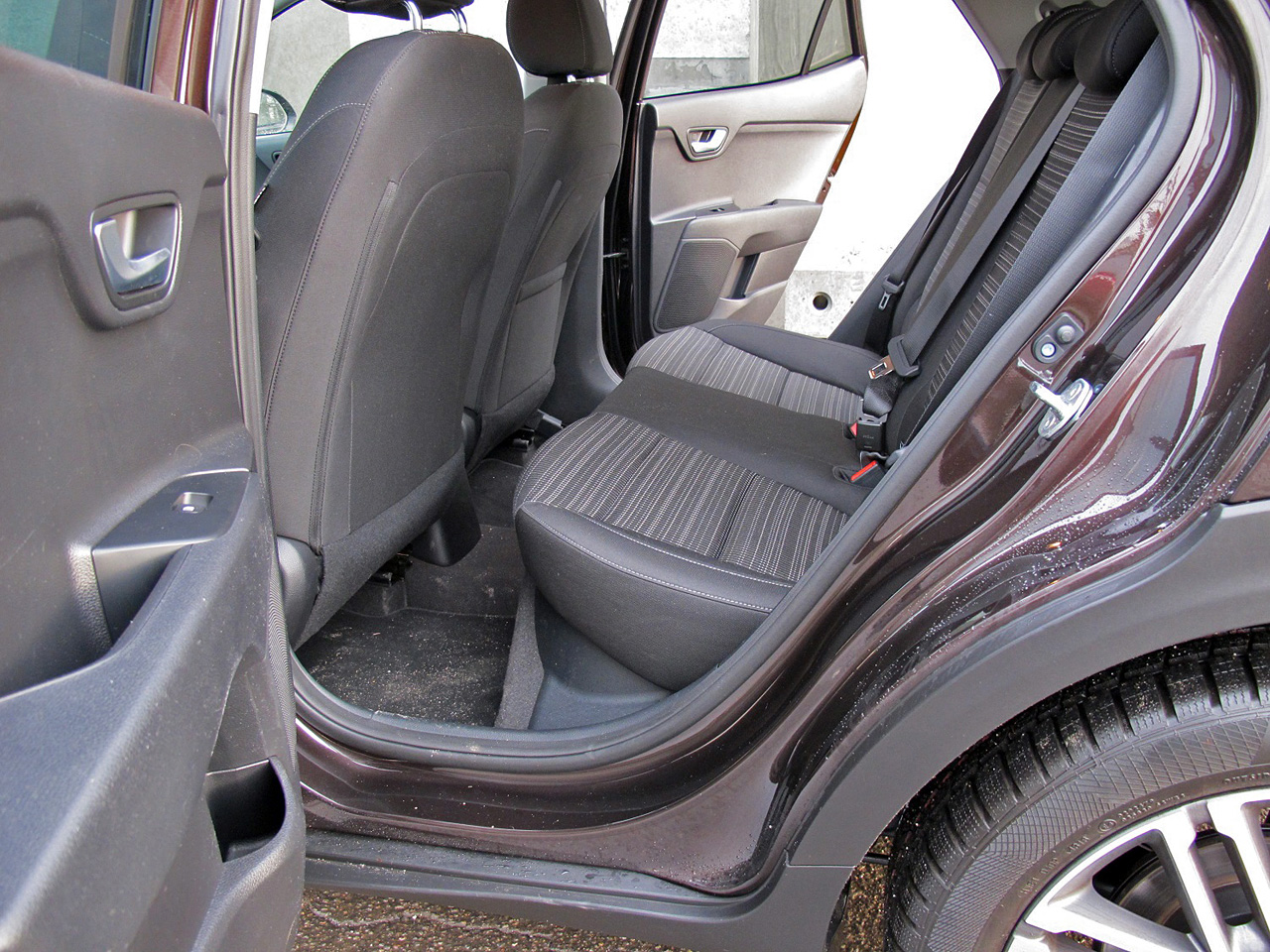 Vi kigger forgæves efter lidt fleksibilitet i kabinen, bortset fra farvemulighederne. Der er ikke engang højere til loftet i Stonic end i Rio, og vi savner fx et forskydeligt bagsæde med justerbart ryglæn, som flere konkurrenter byder på. Kias indretningsarkitekter er simpelthen sluppet for nemt om ved at indrette Stonic.