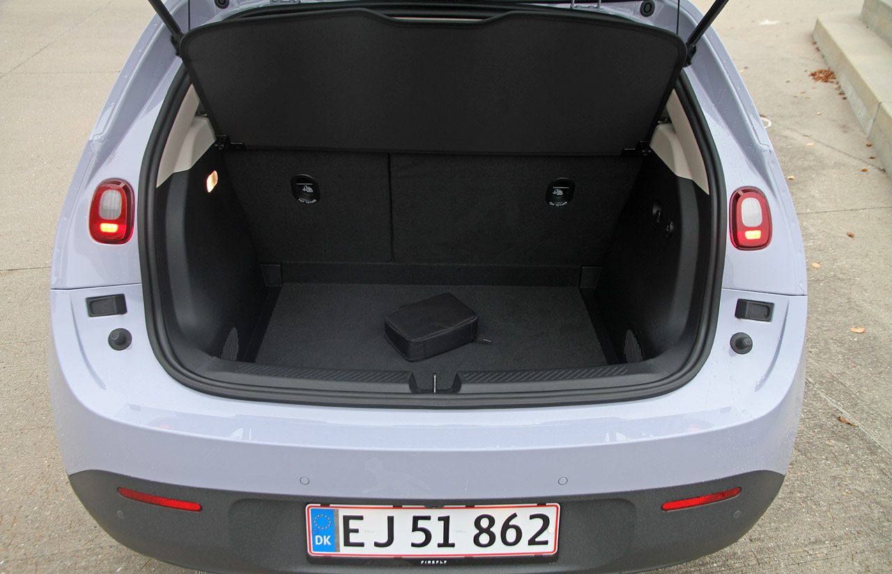 Til gengæld er vi imponerede over pladsudnyttelsen. Firefly er kun 400 cm lang, men byder på fornuftig benplads på bagsædet, hvor der også er god støtte under lårene. Bagagerummet er stort og regulært, omend læssekanten er høj. Og så brillerer Firefly med store aflæggerum under alle sæderne - genialt tænkt - og et gigantisk frunk med afløb under fronthjelmen.