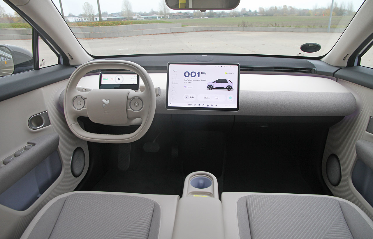 Firefly dyrker - med held, synes vi - en smånuttet stil med sine kuglerunde lygter for og bag og en blød og rar udstråling. De venlige vibrationer fortsætter bag det tykke, ovale rat og i den 13-tommer store betjeningsskærm med en meget moderne, næsten naivistisk grafik.