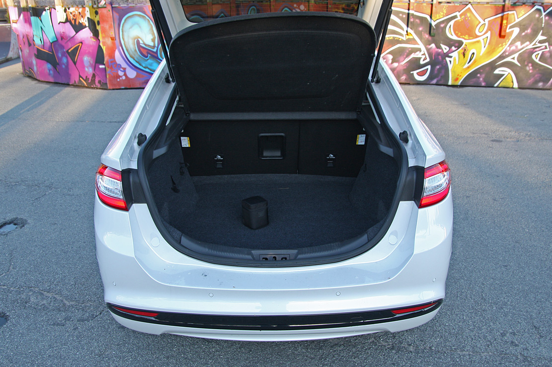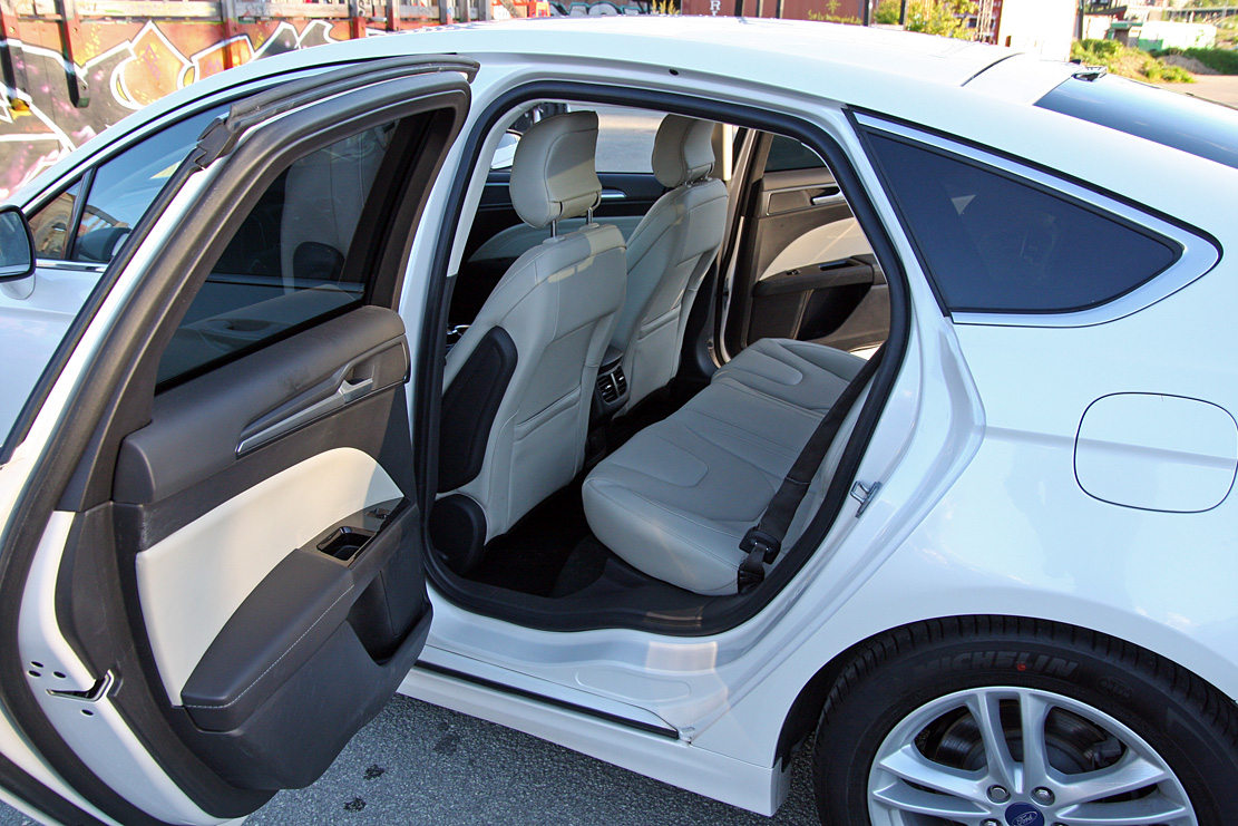 Mondeo er en stor bil. Trods en enorm akselafstand på 285 cm er benpladsen dog en smule indskrænket foran – med denne testkørers lange ben skal førersædet langt tilbage, og det går ud over benpladsen på bagsædet. OK, her er stadig rimelig plads, men ikke nær så meget som i rivalen VW Passat, der får mere ud af sine 279 cm mellem akslerne. Ergonomien – forholdet mellem sæde, pedaler og rat – er dog absolut godkendt. På bagsædet er der også plads til høje personer trods den elegant faldende taglinje på den næsten coupé-agtige femdørsmodel.