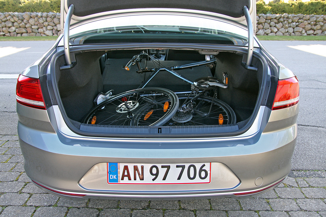 Breeed, elegant og nærmest lækker. Taget har fået et tryk sammenlignet med forgængeren, så du har en fornemmelse af at sidde lavt. Det går endda, og her er massive mængder albuerum og benplads – ikke mindst på bagsædet, der er mere gæstfrit end i større biler som Audi A6 og BMW 5-serie. Som altid i VW er finishen umiddelbart i top med lækre overflader og pæne materialer. Bagagerummet rummer næsten 600 liter og splitbagsæde øger anvendeligheden.
