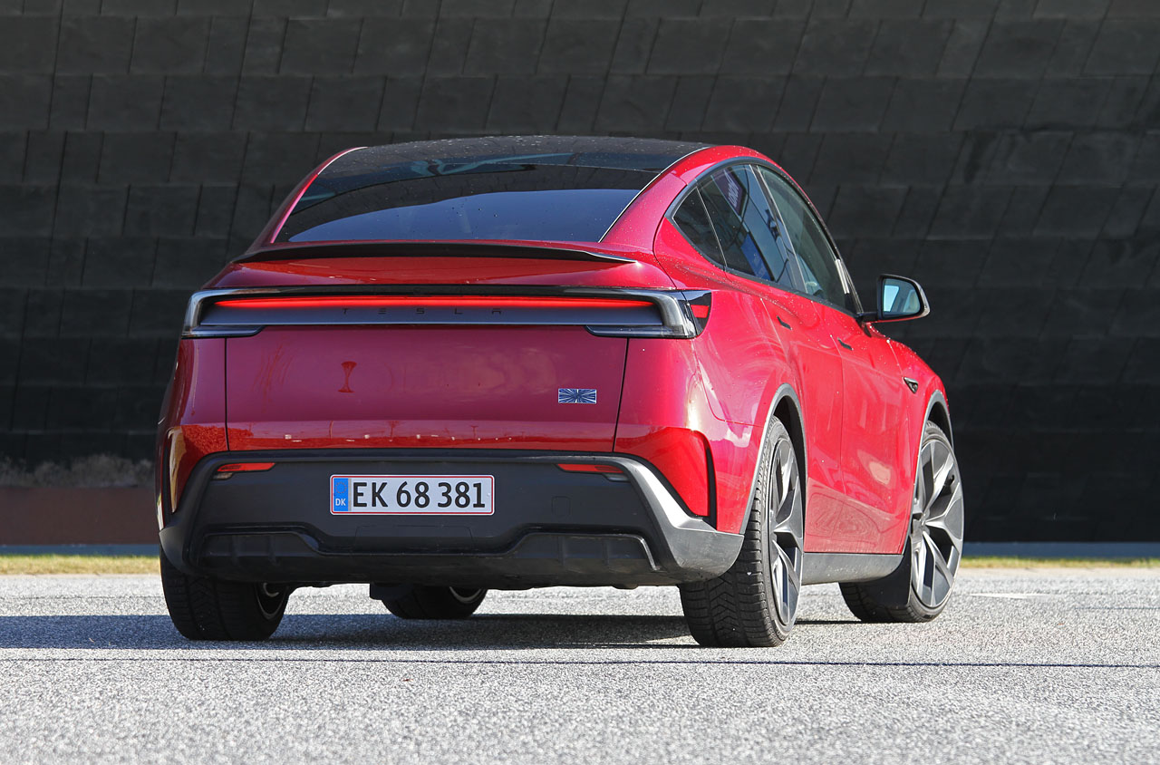 Her tester vi top-udgaven Performance med to elmotorer med tilsammen 338 kW, firehjulstræk og 580 kilometers rækkevidde. Performance er Teslas svar på BMW’s M-modeller, og det markeres med sportssæder, flere kulfiberdetaljer som en hækspoiler og røde bremsecalibre bag de enorme 21-tommer fælge. Undervognen er strammet op med adaptive støddæmpere, der samtidig bevarer komforten.