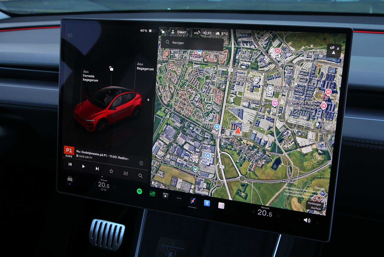Nogle hader det, og kalder hånligt bilen for ’en kørende iPad’. Andre er vilde med det minimalistiske design, der giver ro, fordi brugerfladen stadig er den bedste, der findes. Selve skærmen, der nu er vokset til 16-tommer og står knivskarpt, fungerer nærmest intuitivt, stemmestyringen er velfungerende og forstår dansk, og de to rulle-, dreje- og tryk-knapper i rattet er geniale, når du har lært at bruge dem.