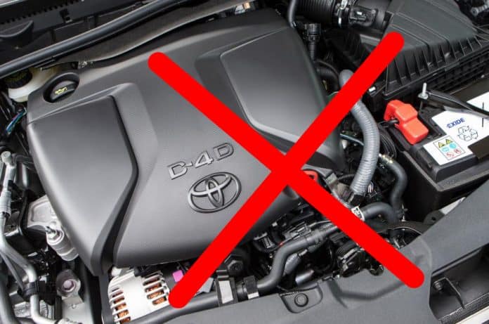 Toyota er dog allerede begyndt at udfase dieselmotorer i modelprogrammet. For det første køber Toyota i dag dieselmotorer ’ude i byen’ hos tyske BMW, der leverer ældre udgaver af deres firecylindrede 1,6 og 2,0 liters dieselmotorer. For det andet tog man tilbage i 2014 en strategisk beslutning under udviklingen af den smarte crossover, C-HR. Modsat ønsket fra Toyotas egne forhandlere, besluttede man udelukkende at tilbyde C-HR med enten benzin- eller hybridmotor, hvor benzinmotoren får hjælp af et batteri og en elmotor.